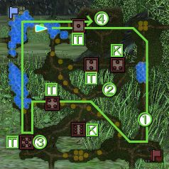 <1>1、4、5番拠点(全部兵長)を回りながら、①張分隊長、②袁分隊長、③劉分隊長を撃破する。 <2>蜜売品の保管庫である拠点を発見したら制圧する。 <3>④に出現した頭目(SA)を撃破する。 <*>2番拠点も保管庫対象のフレアが出ますが、おそらく保管庫になることはありません。 <*>頭目のステータスは他特務のSA武将と比べて高めなので注意。 <*>3、6番拠点に近付くと達成度Sを取れなくなる可能性があります。 <*>副頭目を倒すと達成度Sになりません。 <*>袁分隊長を撃破すると制限時間+7分。