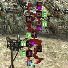 *紫色の丸は下っ端・二、四、五です。 <1>通り道の赤兵士を殲滅する。 <2>6、5、4、3、1番拠点と兵糧庫を制圧する。 <3>下っ端・二、四、五を撃破する。 <4>敵兵糧庫左に出現した頭目(SA)を撃破する。 <*>頭目のステータスは他特務のSA武将と比べて高めなので注意。 <*>商人が撃破されると特務失敗になります。 <*>頭目を撃破する前に、赤兵士の討ち漏らしがないかを確認しましょう。