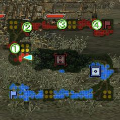 <1>4人の道士を正しい順序で撃破する。 <2>クリアした時間が早ければ達成度S。 <*>道士の撃破する順番と配置は全3種類。 ・①陳道士②王道士③李道士④馬道士 撃破順(馬王李陳) ・①李道士②陳道士③王道士④馬道士 撃破順(王陳李馬) ・①馬道士②王道士③陳道士④李道士 撃破順(李馬陳王) <*>撃破する順番を間違うと全ての道士が復活します。 <*>兵糧庫を制圧すると獲得義が1から3に増えます。