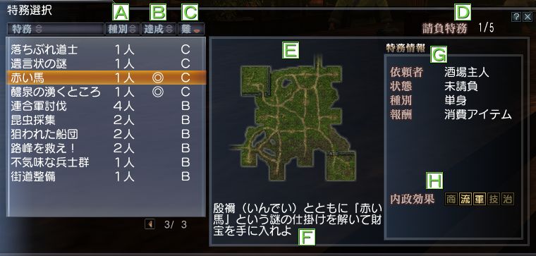 基本情報 街にいる各NPCから『特務』を請け負うことが出来ます。