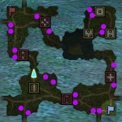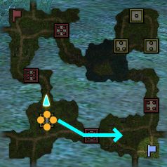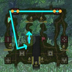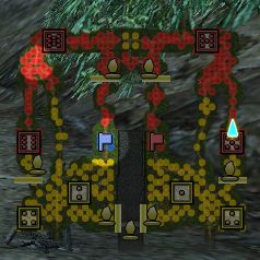 水色の矩形は破壊可能な壁、緑色の線は隠し通路になります。