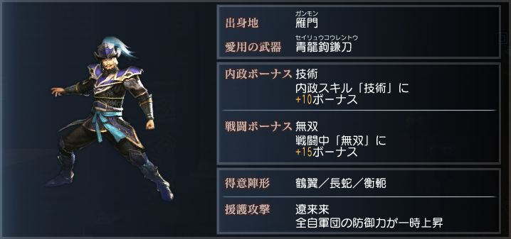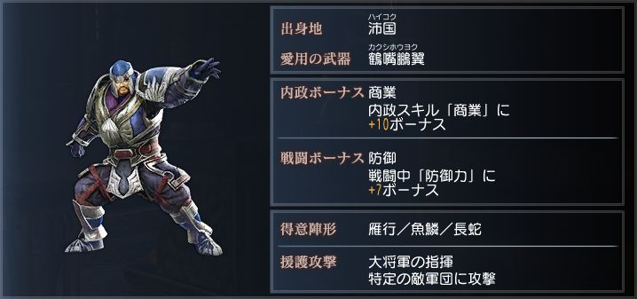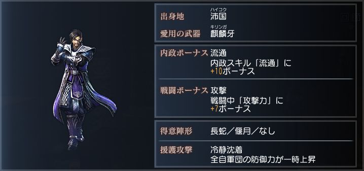 冷静沈着な将であり、一人の武人としても一流の強さを持つ。