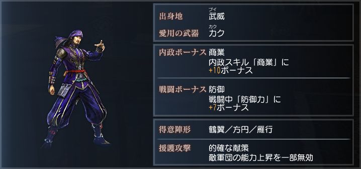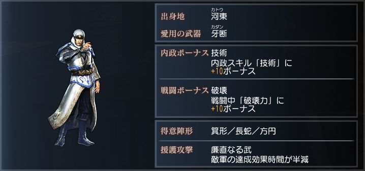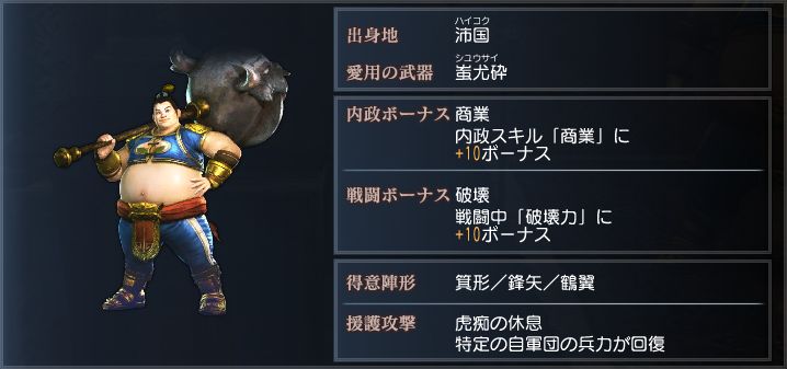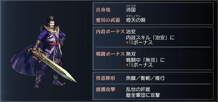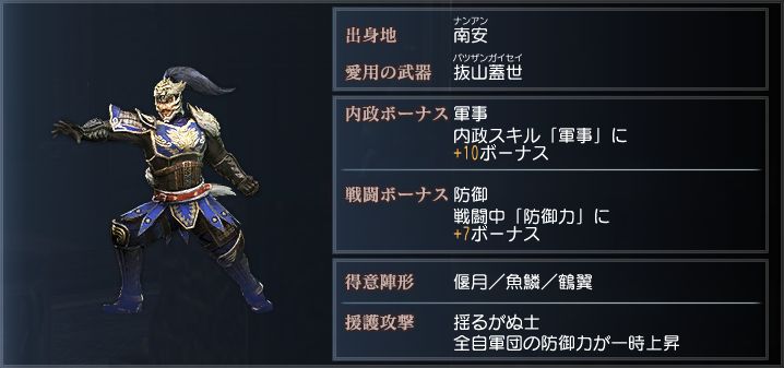 豪胆にして武芸百般に通じる武人で、曹操からの信任も厚い。