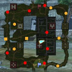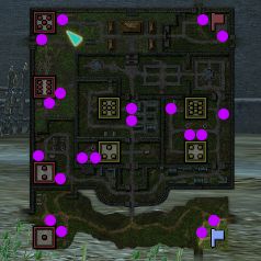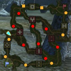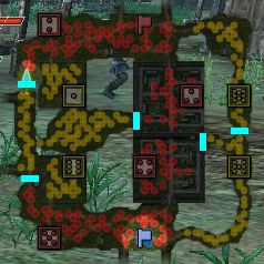 戦場マップ別情報・水色の矩形は破壊可能な壁、緑色の線は隠し通路になります。 最終更新日:2013/08/10